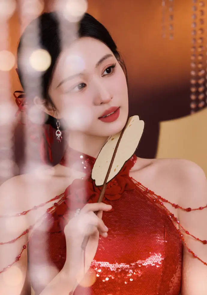 搜狐娱乐讯 2月16日,一组王楚然的美照曝光,她身穿红色挂脖裙。