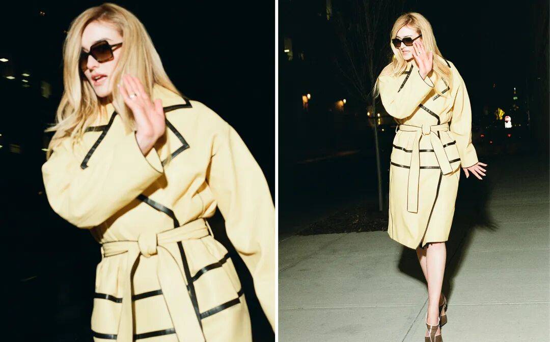 她的头发染成了浅金色,发根处隐约透出原本的巧克力色。她戴着小巧的黑框墨镜,和三十年前她所饰演的角色在同一个街区戴的那副如出一辙。后来她承认,那确实是从剧组服装部顺回家的。