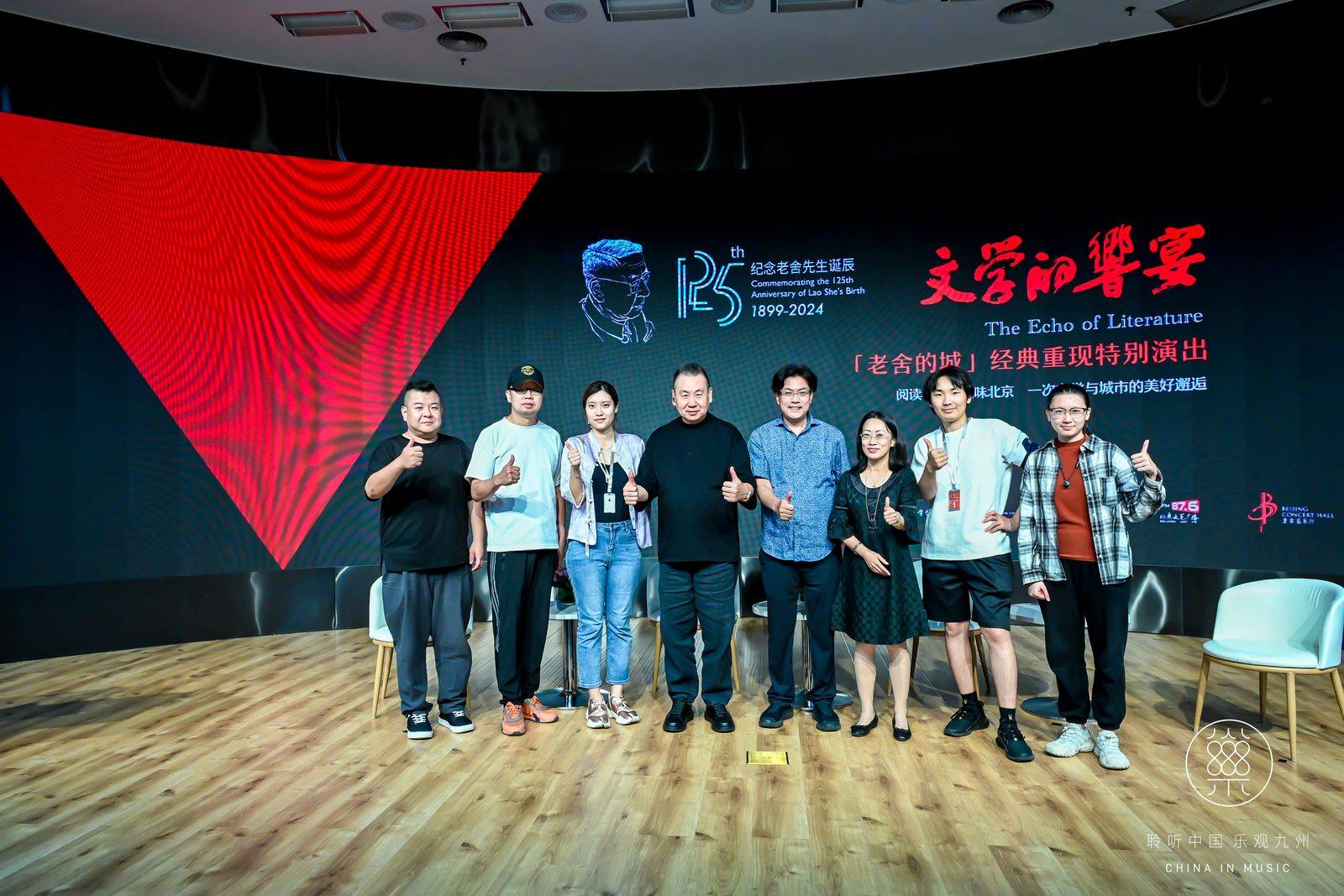 北京音乐厅经理张艺林的发言也强化了文学的响宴这一意像:“我们选择在北京音乐厅这座全国代表性的表演场所举办演出,聚焦老舍先生经典篇章中的精彩瞬间。旨在通过富有张力的朗诵与音乐表演,重新诠释作品中的世间百态、人情冷暖。观众将通过艺术家的声音表达,重新感受老舍先生独特的语言风格,以及其作品所传递的深刻的思想内涵。”