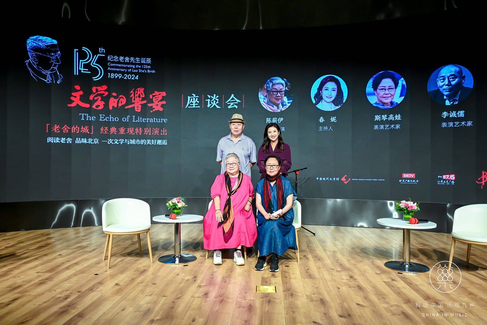 在当天的座谈会上,导演陈薪伊与艺术家斯琴高娃、李诚儒、春妮就老舍作品的舞台呈现进行了研讨;出版人、作家零露与著名作家李洱、石一枫分享了老舍先生给写作者带来的启迪;文艺评论家、资深媒体人满岩与老舍研究学者孟庆澍、季剑青、杨浪就老舍与北京,作家与城市等话题展开了交流。满岩表示:“老舍与北京之间的关系是文学与城市互动的最好例证。老舍不仅将北京作为作品背景,更通过细腻的笔触和地道的方言展现了这座城市的独特文化风貌。对他而言,北京不仅仅是地理上的位置,而是一个承载着丰富情感与深刻记忆的生命体。通过老舍的文字,北京被赋予了一种独特的文学想象,成为了一个生动可感的存在。”北京大学教授季剑青从人类学的角度拓展了人们对老舍作品的认知,老舍笔下的人物具有鲜明的地域特征,对这些人物的描摩却常常反映着历史、当下人类的共同困境。北京作协主席李洱说,除了人们耳熟能详的《骆驼祥子》、《茶馆》等经典作品之外,他的意象更丰富,写作更自由的《猫城记》等作品还没有得到应有的重视。作家石一枫则分享了他对《二马》中老马和小马的重新解读,在他看来被老舍先生当作反面形象的老马在今天的语境下反而有了更多自我放逐的精彩。而他的《正红旗下》在写作上水准更高,更能代表其文学价值。老舍研究学者孟庆澍描述了时下老舍作品影视戏剧创作改编落后于研究成果的现实,他认为老舍先生的作品是复杂而微妙的,这也对《文学的响宴——老舍的城》提出了更高的思想深度和审美要求。杨浪老师则表示:老舍与北京,作家与城市仅仅是一个话题的开始,通过挖掘文学内核与城市生活的联接,让活跃深刻的思想进入公共文化生活将拥有更广阔的未来。