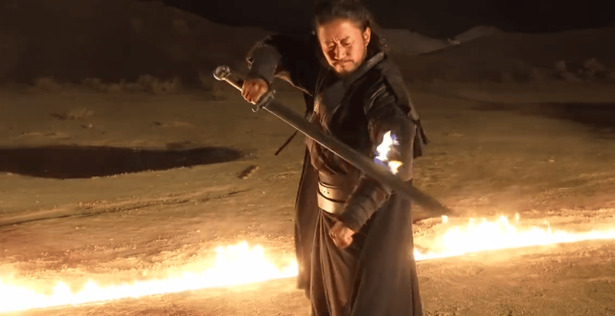 但真火的质感和呼吸感,远非特效可比,动作指导谷轩昭提出直接用真火。汽油和煤油配比之后,燃烧起来有火有烟,也有很大风险,剑上是火,衣服也要燃烧着火。