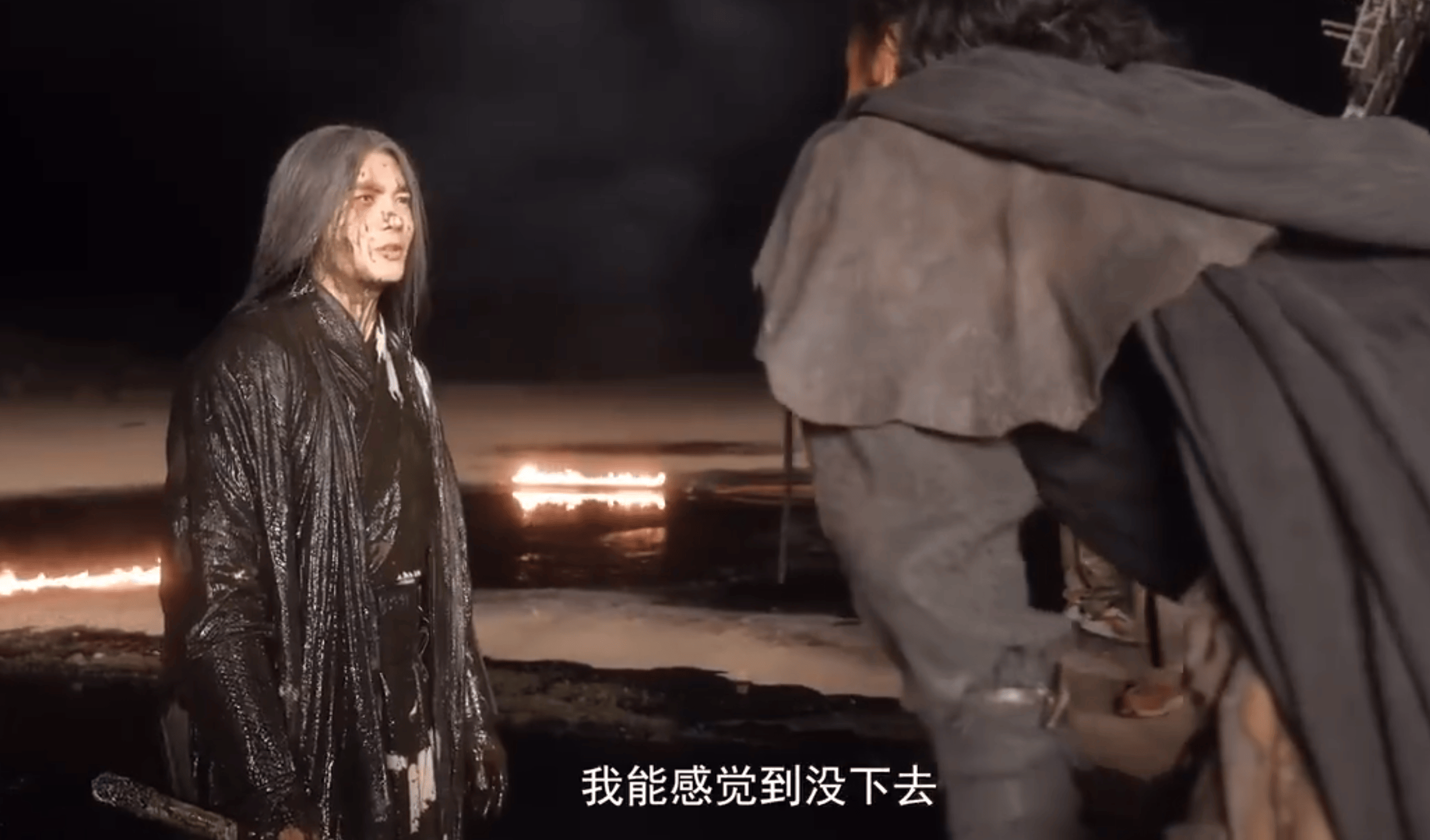 那场于适跌入火油潭的戏份,虽然是面粉和墨水混合的物质,弄到身上也会很不舒服,于适拍了一条本来可以过了,他觉得自己还不够好,又来一条把头直接埋了进去。