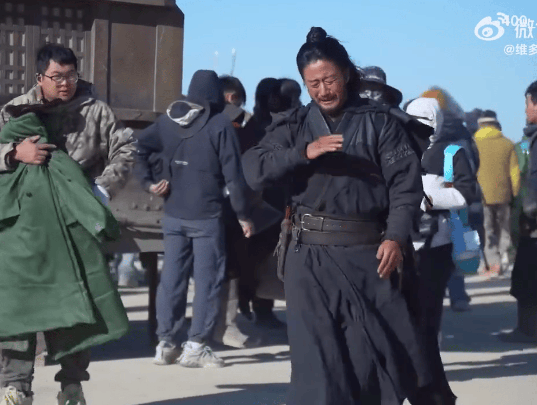 看纪录片才明白他为什么要特别提出探班的要求。三个人的那场打戏是在北京拍摄,片尾彩蛋中袁和平、张鑫炎、吴彬三个人同框也是在北京。但李连杰所说的探班,是远赴新疆,他在新疆和其他演员们一起吃了很多天沙子。