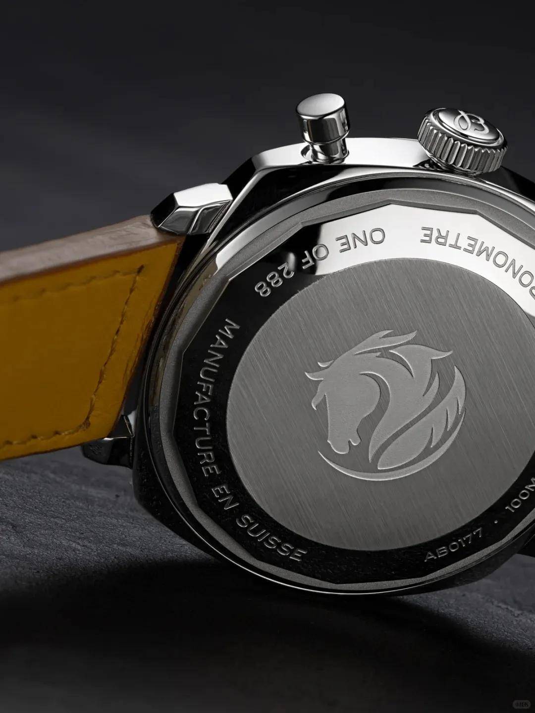 表背镌刻马头侧影与“ONE OF 288”限量编号,复古赛车风与生肖马的结合,有一种“老派绅士”的酷劲。