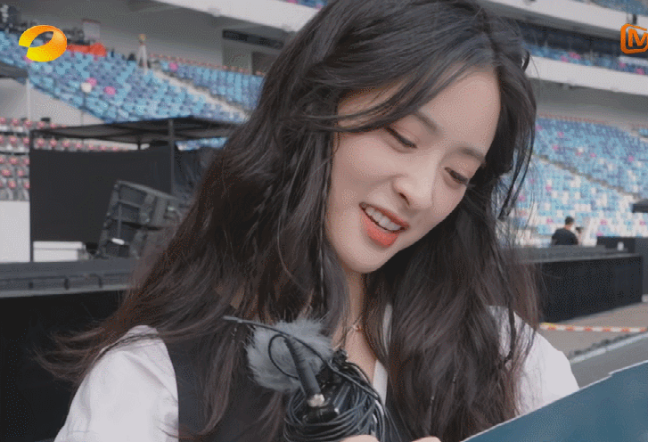 然后镜头一转,节目组工作人员就来到了跨年演唱会的后台,花字还来了一个“我愿意”,紧接着沈月就出现在镜头中了。