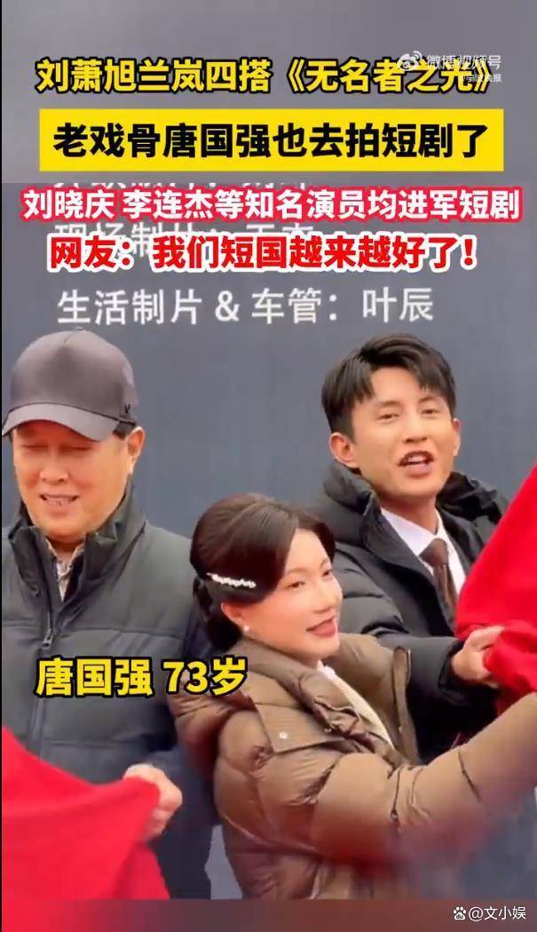 【铿锵电影 晚间快报】据2月26日媒体报道,短剧圈又迎来一枚“重磅炸弹”:73岁的伟人特型演员、著名表演艺术家唐国强正式进军短剧赛道,其首部完整短剧作品《无名者之光》在横店开机。继刘晓庆、李连杰等知名演员之后,又一位老戏骨“下场”参演,让网友不禁调侃:“我们短国的阵容是越来越好了!”