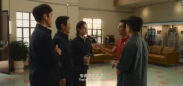 当沈腾饰演的张弛和尹正饰演的孙宇强,第一次见沙溢演的中速梯负责强时,为了显得正式,两人爆改自己,穿着“局里局气”的造型登场,全场爆笑。