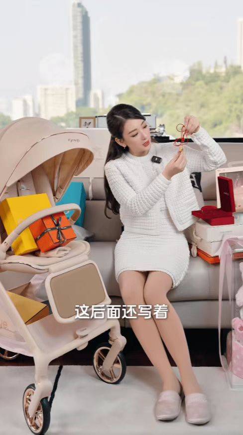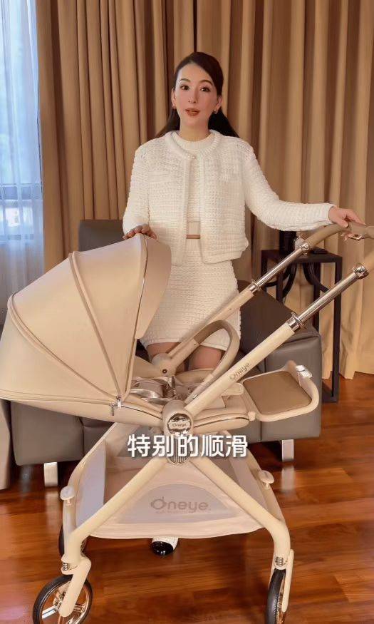 方媛推婴儿车,夸赞颜值与顺滑质感。