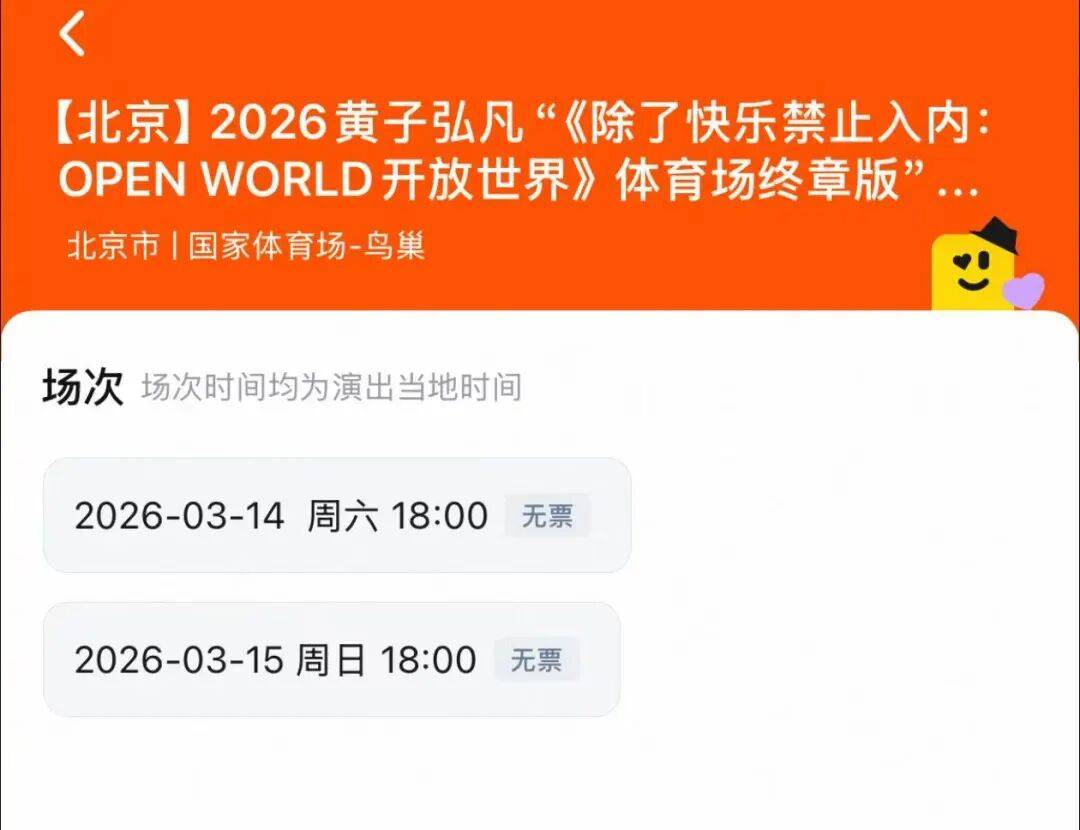 2026年3月14、15的鸟巢,黄子弘凡站在歌手的梦想之地。但更重要的是,这场演出会把一个问题变成可被验证的结果:在一个被放大到“超大场域”的舞台里,谁能把情绪从灵感变成创作、把实力变成口碑、把快乐从口号变成体验链路、把现场从一次性爆发变成可持续的内容供给——谁就更接近「未来主场」要的答案。而开篇提到的售罄,也让这个答案不再只是推论,而成为已经发生的现实。