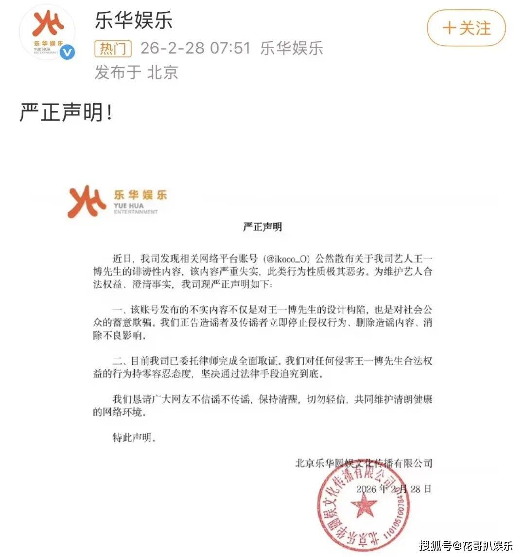 就在吃瓜群众疯狂吃瓜,粉丝努力澄清,正主沉默不语的时候,乐华娱乐难得没有像以前一样什么话都闷着不说。几个小时之后,乐华娱乐迅速发布严正声明,直指相关内容系恶意伪造,并已委托律师全面取证,准备追究造谣者的法律责任。只不过这样的声明吃瓜群众看得太多了,所以只有粉丝吃了颗定心丸,还是有不少人围观看热闹。