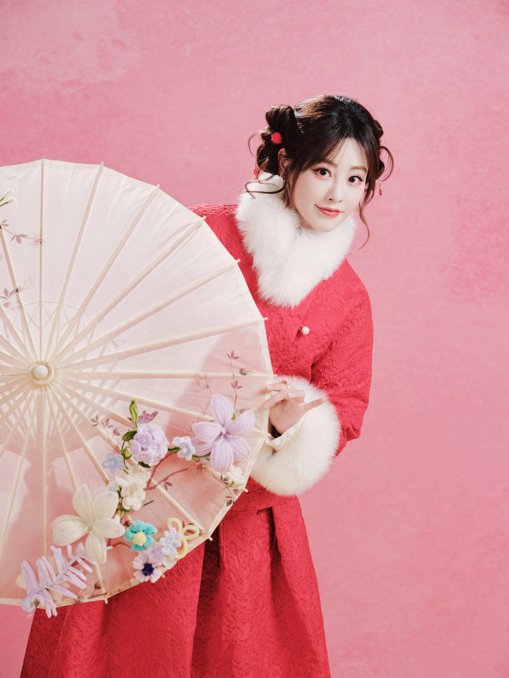 祝绪丹红装配白绒,尽显古典又甜美的气质。