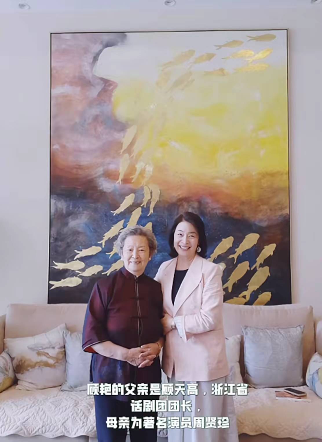 顾艳的母亲周贤珍,入行已经有70年了!她长得端庄大气、在话剧团的时候就是台柱子。