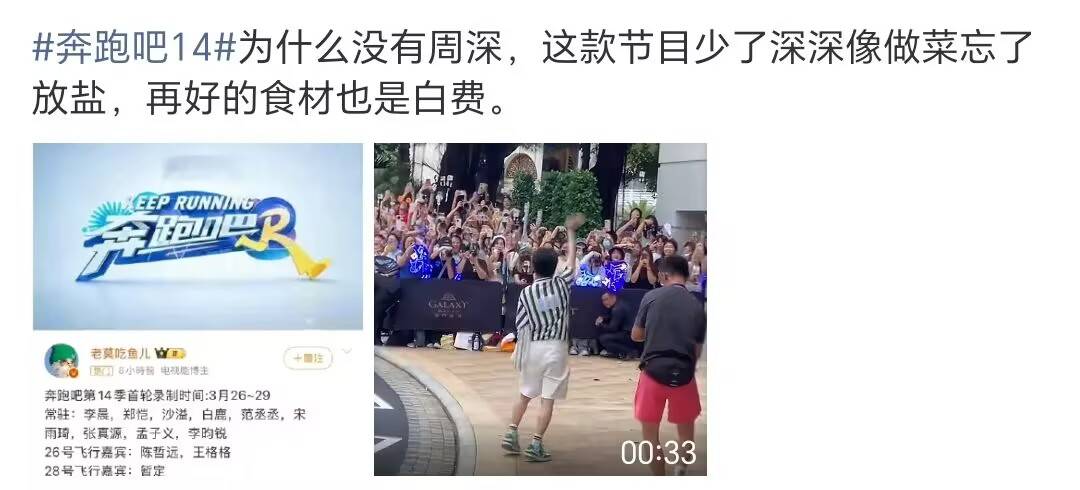 事实上,周深在节目中的存在感不可替代,他不仅能制造梗,还能推动互动,比起很多嘉宾只会抛梗,他的表演带有创意和感染力。网友们对此评价也相当直白:没有周深,这节目就像做菜忘了放盐,再好的食材也白费。可以预见,没有周深的《奔跑吧》,观众会产生不小的落差感。