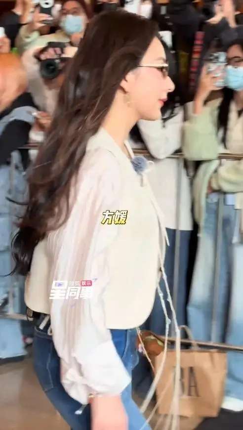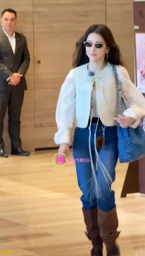 她身穿一件白色外套,袖口宽大,让整个人看上去有些臃肿;下半身搭配普通牛仔裤,脚踩一双棕色长筒靴。卷发披肩,背着一只普通帆布包,整体造型显得随意甚至略显潦草。方媛身高不低,但这套穿搭完全没凸显身材优势,反而显得矮壮,与平日的时尚感大相径庭。