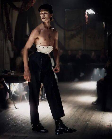 如果说Dior时期的他,打造的是浪漫奢靡的“贵族沙龙”;那么Margiela时期,他则反其道而行之,开始探寻时间衰败下的质感,触碰伤痛亚文化,洞察社会边缘的人间百态。