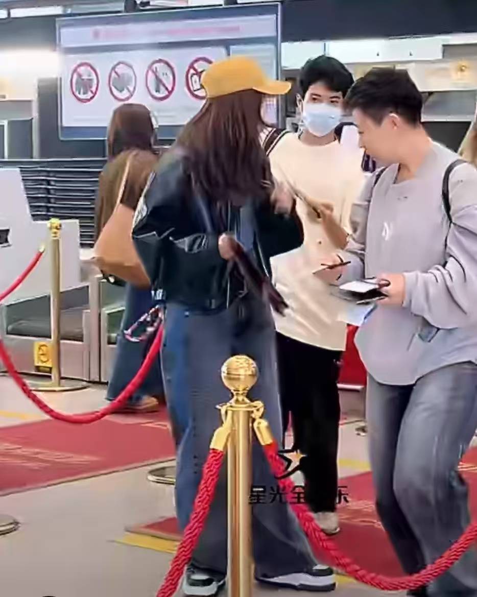 刘芸手持袋子,Jagger跟在身后身形挺拔。