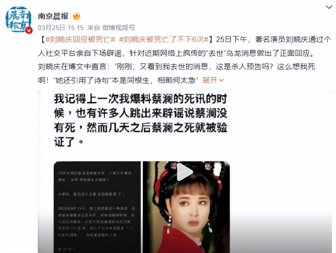 随后刘晓庆也是直接回应,“这是杀人预告吗?这么想我死啊!”