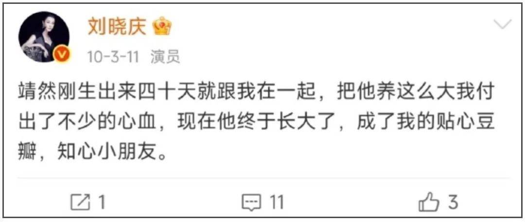 其实,刘晓庆和外甥一家的矛盾远不止钱财那么单薄,而是长期生活留下的混乱,这主要也跟刘晓庆把母爱全都给了外甥有关。刘晓庆曾多次骄傲地分享自己把外甥养得多优秀多贴心,只是落实到具体的利益,外甥并没有跟她一条心,会让刘晓庆徒增出一种不平衡和不值得的情感。
