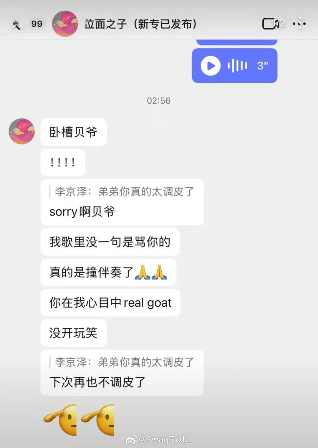 “卧槽贝爷,sorry,我那歌里没一句是骂你的,弟弟也不可能来骂你。