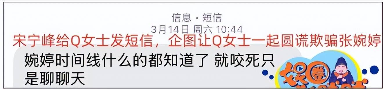 2026 年 3 月 14 日,宋宁峰联系 Q 女士,让她咬死两人只是普通聊天,试图联手隐瞒,蒙混过关。为了稳住对方,他甚至在 3 月 15 日当天,先是承诺会和张婉婷离婚,给 Q 女士一个交代。可仅仅几个小时后,他就彻底翻脸,直言之前的承诺根本不算数,还自嘲自己一向说话不算数,曾经答应过要好好爱妻子、做好父亲,结果还不是一样背叛。