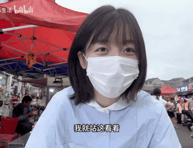 她就边吃边卖。