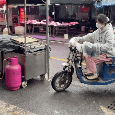 她推着电动三轮。