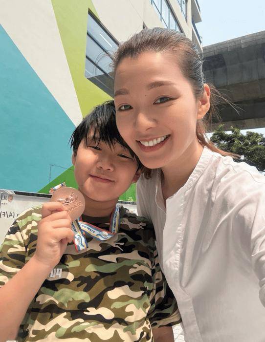 近日,吕慧仪在社交网晒出与儿子游泳比赛获奖后的温馨合照,庆祝儿子夺得铜牌。不少网民惊讶发现他与新加坡天王林俊杰十分相像!