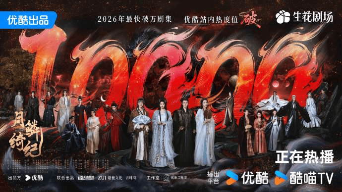 没错,由郭敬明执导并编剧,鞠婧祎、曾舜晞、陈都灵、田嘉瑞等主演的古装爱情奇幻剧《月鳞绮纪》自4月1日在优酷上线后,短短52小时站内热度已破10000、刷新平台年度最快破万纪录,并在播出次日就登顶猫眼全网剧集榜TOP1。