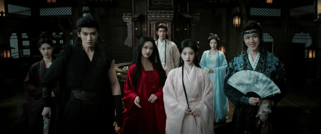 如剧中的服化道细节皆按照高清标准制作,角色肩膀、领口、袖口的每一颗宝石与珠片都经得起4K特写放大;又如镜头语言精良考究,多人同框的群像站位、打戏一招一式的精准卡位、色彩对比强烈的光影色调等共同构建出符号化、富有仪式感的审美体系,“暂停即壁纸”的美学标准名不虚传。