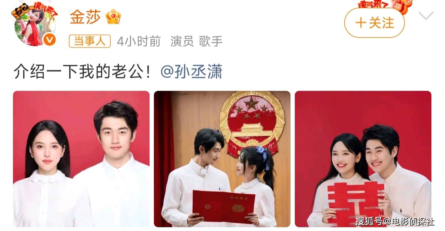 4月9日,娱乐圈又迎来一桩喜事——43岁的金莎和26岁的孙丞潇同时在社媒晒出结婚照,官宣领证结婚,消息一出,评论区瞬间炸了锅。