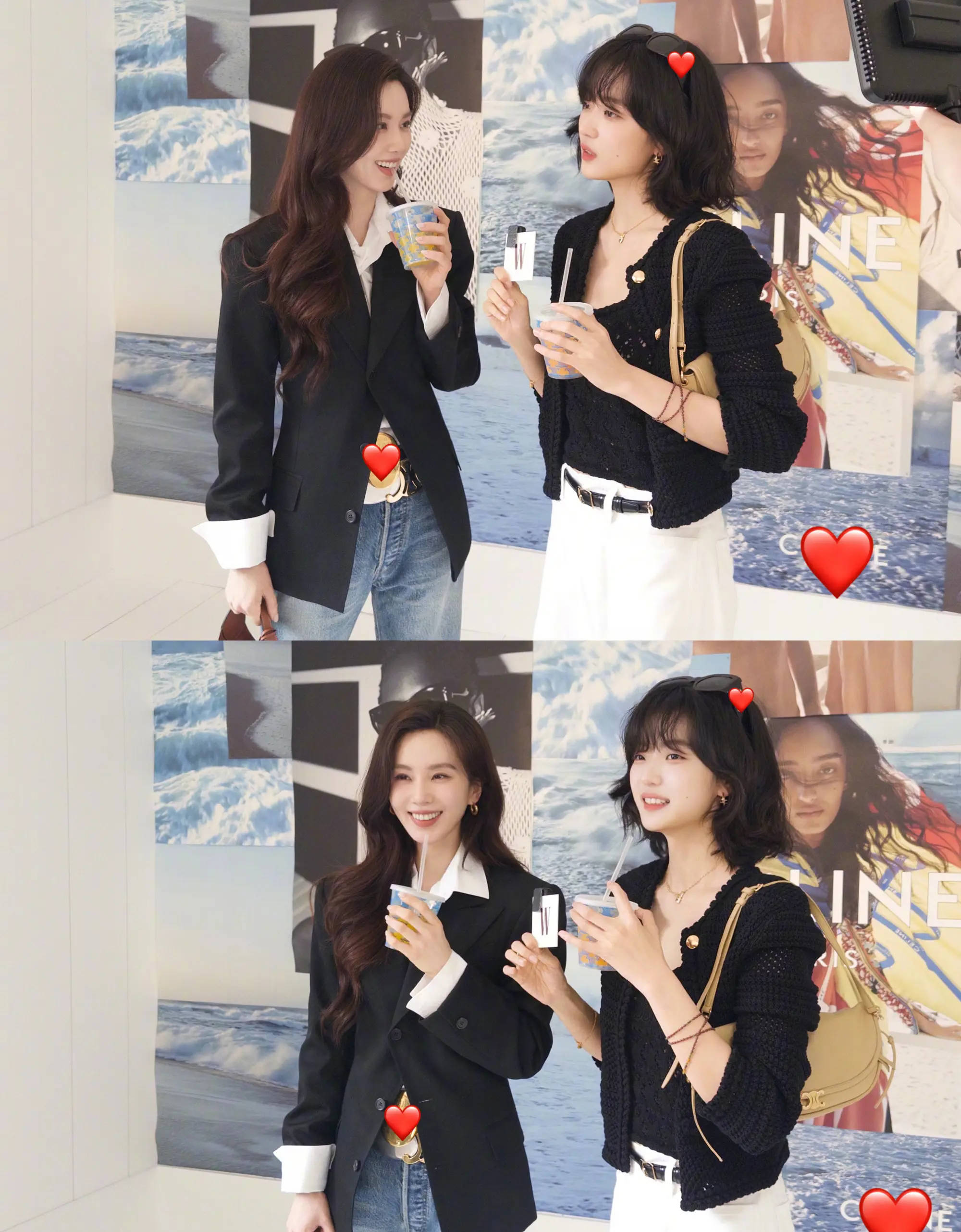 刘诗诗与孙千笑容灿烂,明媚动人。