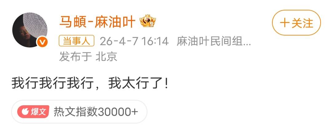 网友们调侃:嘴上说不急,身体却很诚实。马頔幽默回应:我行我行我行,我太行了!生动诠释了何为愿赌服输,也让他的幽默与真性情进一步赢得观众的喜爱。