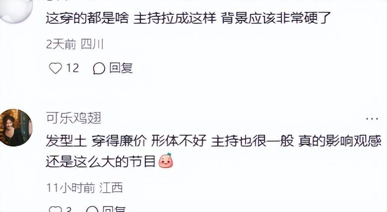 网友也知道她不是专业主持人,可重点并不是她不专业,她连普通嘉宾的门槛都没够着,普通嘉宾都知道活跃气氛、抛梗接梗,她却只知道傻站。