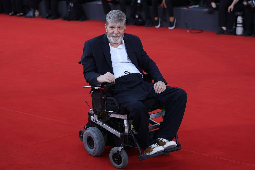 9月1日,在意大利威尼斯举行的第81届威尼斯国际电影节上,作家马塞洛·鲁本斯·派瓦出席主竞赛单元影片《我仍在此》首映式红毯。该片根据他的同名著作改编。新华社记者 李京 摄