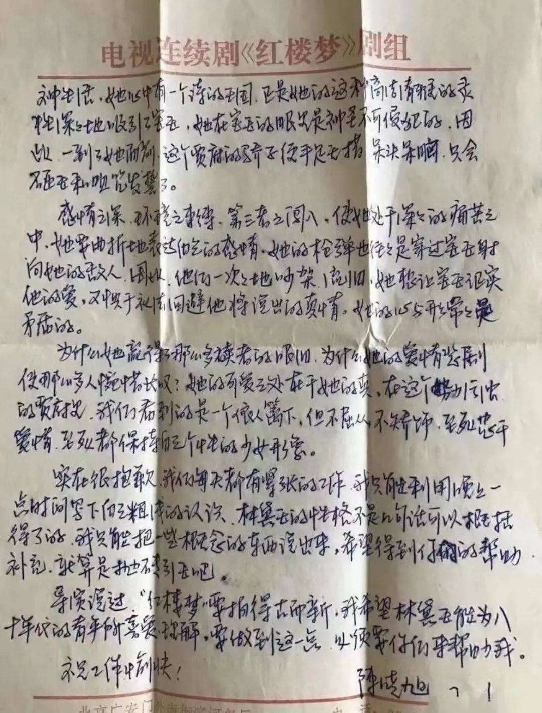 又有网友晒出陈晓旭当时在演完林黛玉之后给影迷的回信:“她把全部自我深浸在感情的深海中...最后就在这里面消灭了她自己”。