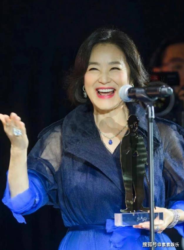 在活动现场,林青霞获颁“亚洲卓别林电影人士艺术成就奖”,身穿蓝黑薄纱礼服的她还是和以前一样优雅从容。