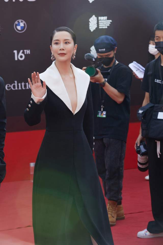 当时海清身着一件深V黑色礼裙,确实还是很性感漂亮的,但脸部状态却开始备受网友和媒体的争论。她的颧骨两侧鼓鼓囊囊,嘴唇也嘟嘟的,面部表情看起来就有些生硬,给人一种发力很猛又猛中不足的既视感。