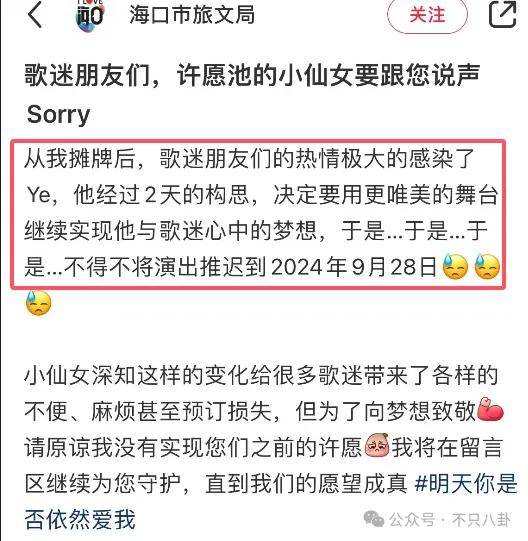 但8月29号,海口文旅局官宣侃爷试听会,此次演出成定局!