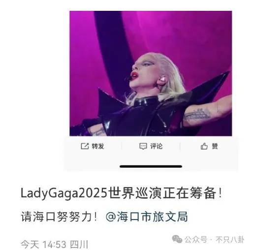 最后要说的是,海口成功举办侃爷试听会后,很多欧美歌迷对其寄予厚望,有人给留言说希望ladygaga来国内巡演,海口旅文局表示“收到”。