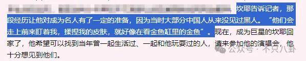 侃爷说当时大部分中国人没见过黑人,会围观他,还揉捏他的皮肤,这段经历对他成为名人有了一定的铺垫。