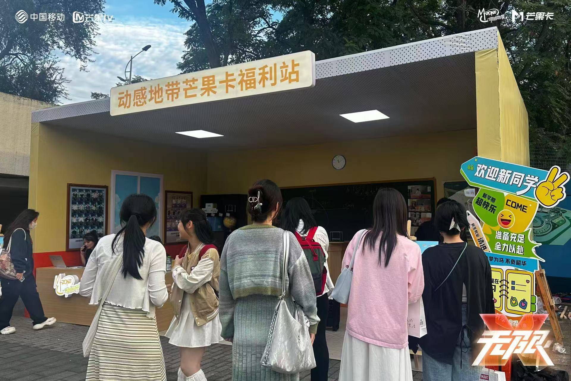 值得一提的是,外场动感地带芒果卡福利站的布置上也是创意满满,1:1全真还原了青春学长宣传片中的经典场景,不仅展示了 成都、济南、长沙、兰州四站嘉宾的签名海报及限量版T恤,还巧妙融入了教室元素,分区域打造了艺术教室、手工教室、多媒体教室和体育教室,生动展示超级会员、超级芒盒、超级特权三大权益,让每一位参与者都能在这片青春的天地间,找到属于自己的舞台和乐趣。