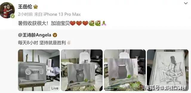 爸爸王岳伦在社交平台上晒出,王诗龄暑假回国也没有闲着认真画画。王岳伦还夸赞女儿进步非常大,值得相信,他是毕业于央美,科班出身,这一次是为了提高女儿的素描功底。有一个画画功底扎实的爸爸调教,真是很幸福,把真传都教给王诗龄了。