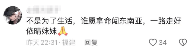翻看依晴的账号,她在9月23日还发布了动态,写着“既然回头不是岸,就没有回去的打算。”真是一语成谶了,如今真的回不来了,令人太惋惜了。