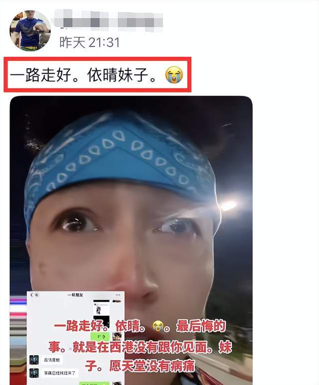 而在她去世的前一天,依晴的状态很令人担忧,她在直播中一直哭,双眼都哭肿了。