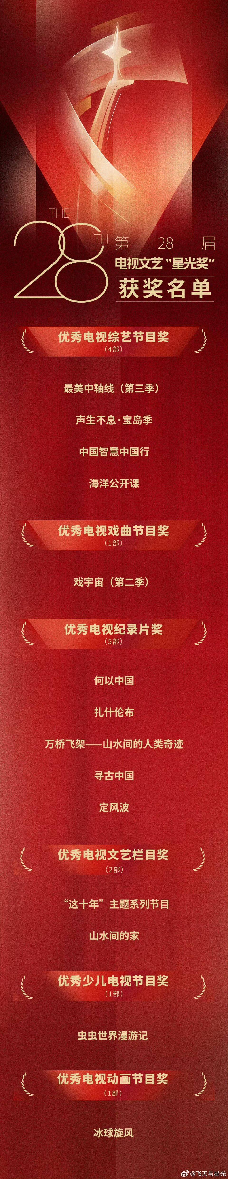 第34届“飞天奖”的评选范围为2022年1月1日至2023年12月31日期间,在中央电视台或各地卫视频道播出的电视剧,在全国性重点视频网站首播的电视剧和网络剧。这也是“飞天奖”首次将网络剧纳入评选范围。第28届“星光奖”的评选范围为2022年1月1日至2023年12月31日期间,在中央电视台或地方电视台播出的电视综艺节目、电视戏曲节目、电视纪录片、电视文艺栏目、少儿电视节目、电视动画节目等六大类作品。