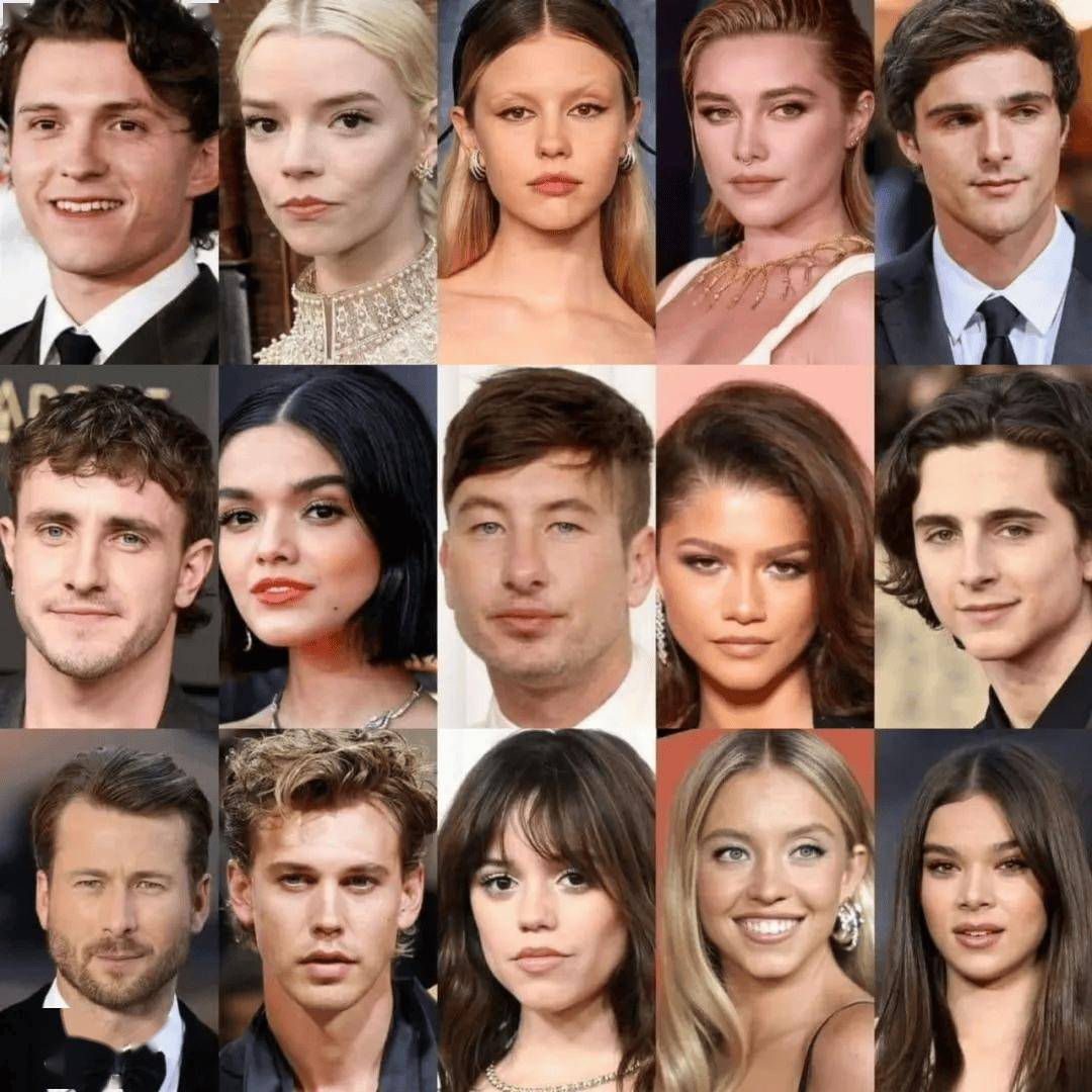 ▲榜上有名的就有 “好莱坞新生代一线”代表——甜茶Timothée Chalamet 、《沙丘 2》里的“表舅”Austin Butler、电影《龙卷风》男主Glen Powell、《亢奋》里的大高个儿Jacob Elordi以及《晒后假日》的男主Paul Mescal。除此之外还有大家很熟悉的《蜘蛛侠》荷兰弟、被称为“好莱坞普男之首”的Barry Keoghan等等。女明星里也有大家熟悉的名字,例如Zendaya、Anya Taylor-Joy以及“星期三”Jenna Ortega等。