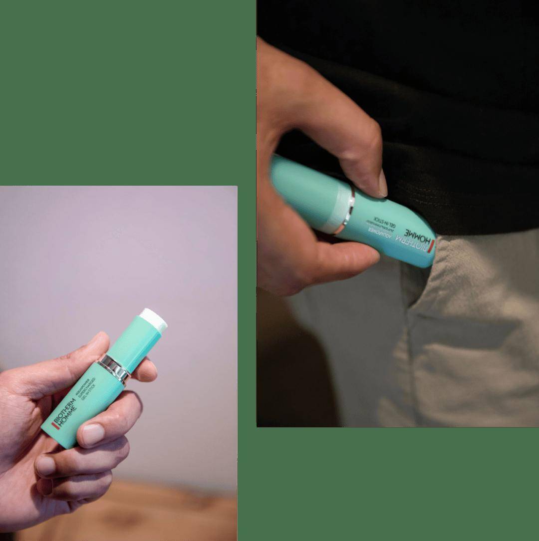 特别是爱做户外运动的男士,传统的瓶装太大个,牙膏管塞包里还得担心不小心挤破弄得包包里都是。带碧欧泉「水动力」肌肤解渴棒出门甚至都不需要包包,直接放在衣兜里就可以了。