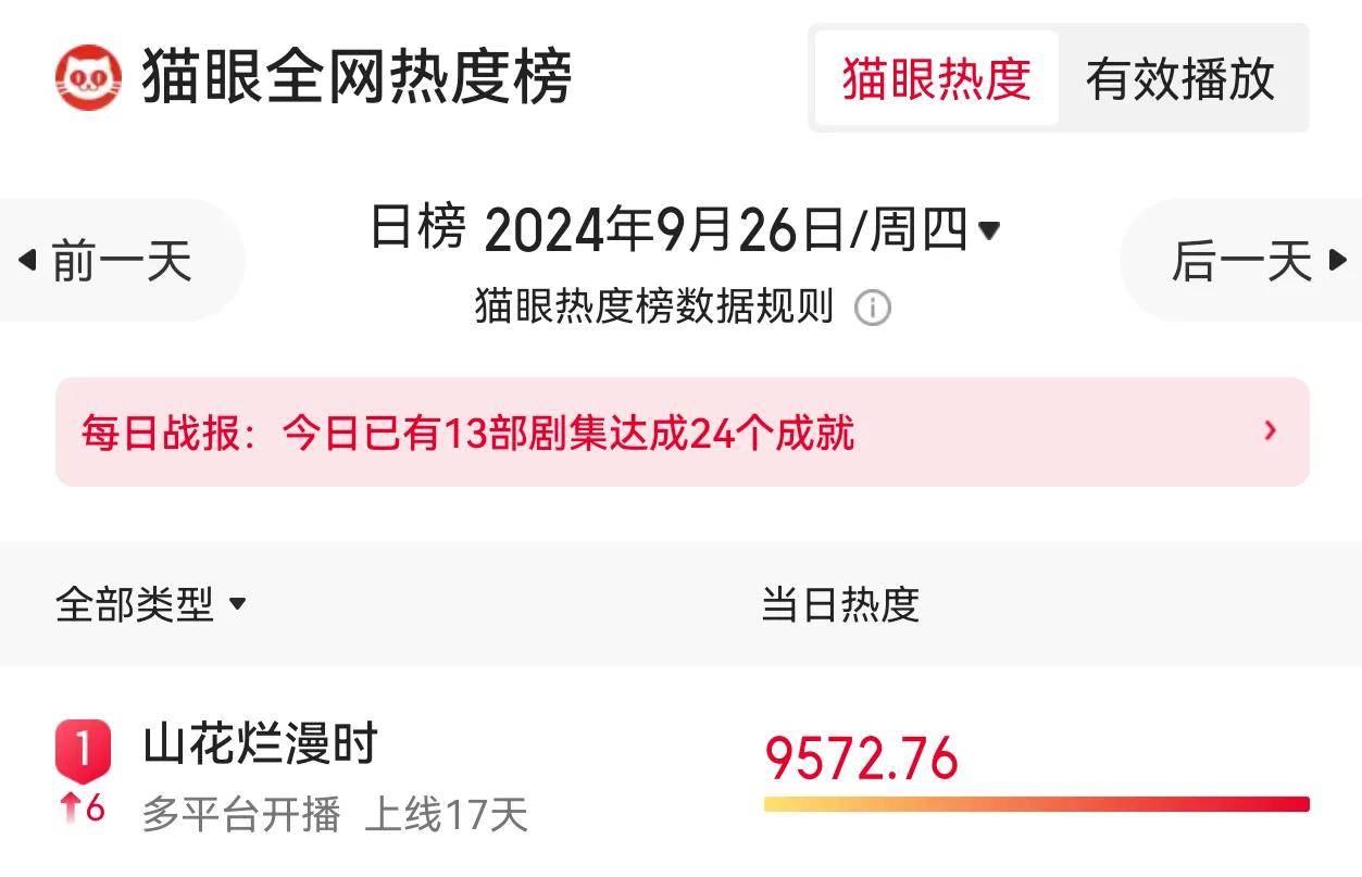直到上线第17天,《山花烂漫时》的全网热度排名才直线飙升至第一。估计央视都没想,这么好的一部黄金档正剧在网络上竟如此慢热。