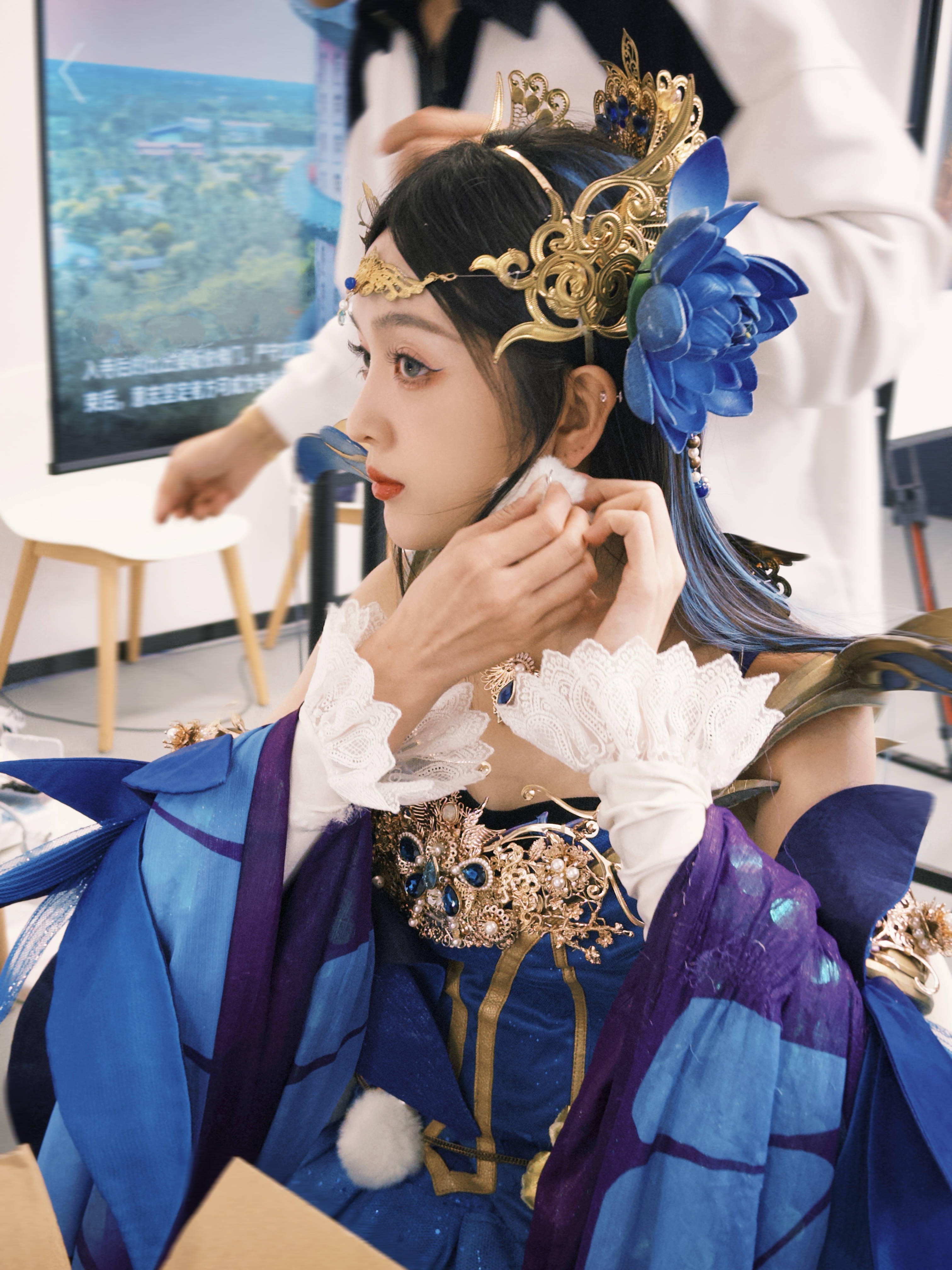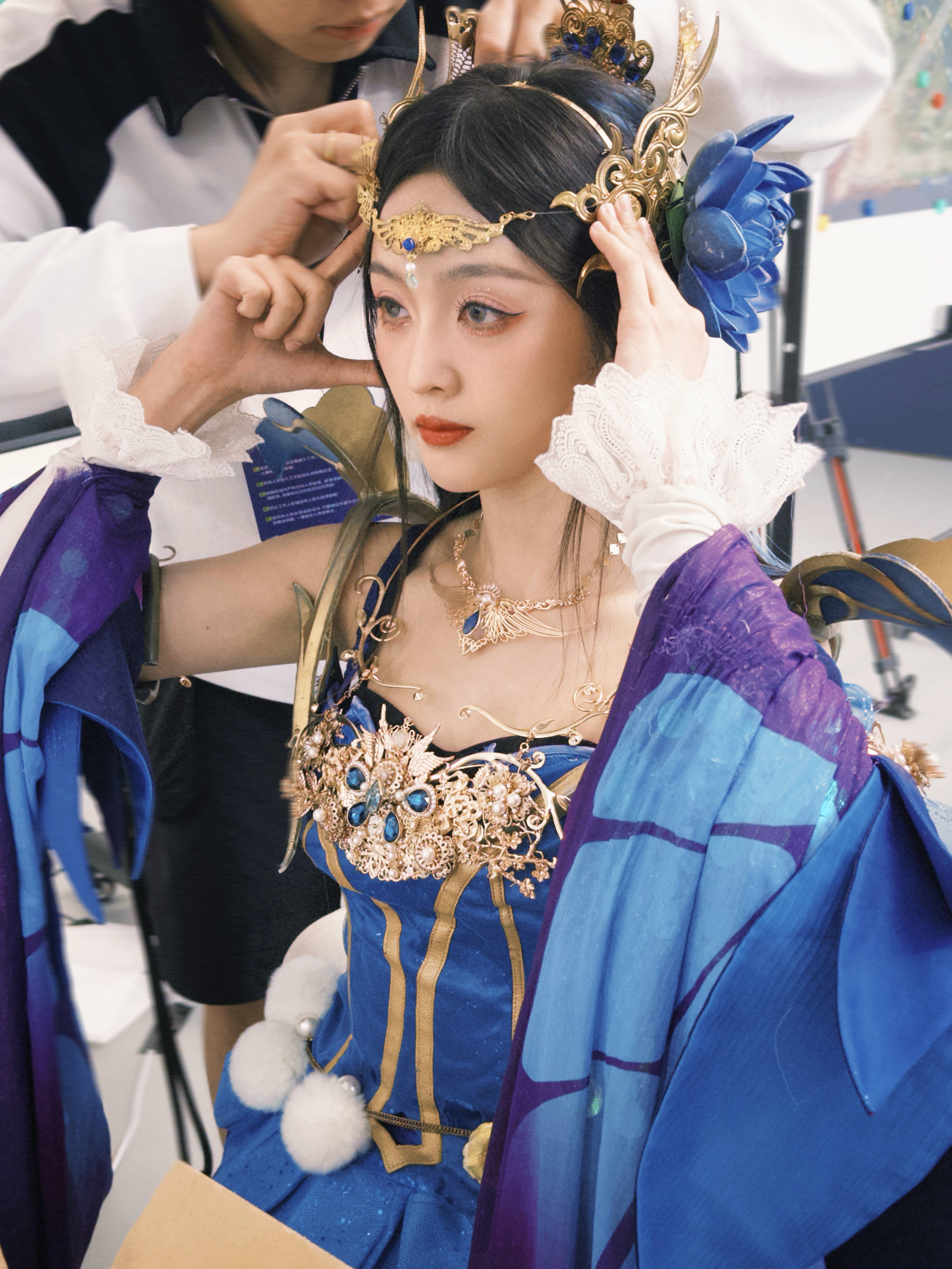 搜狐娱乐讯 9月27日,吴宣仪在综艺节目上cos了貂蝉,照片里的她穿蓝色短裙,双腿修长,化身动漫人物灵动大方。